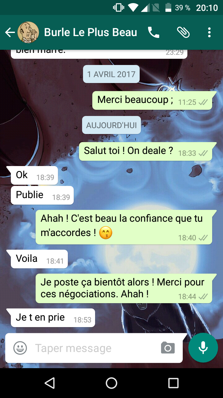 • Après petite réflexion, tu bluffes Martoni. La réponse toute en douceur de crappy (alors que c’est une belle quenelle) vous trahit : il est dans le coup et devait faire en sorte que ce soit + crédible. FINement joué Pop :p